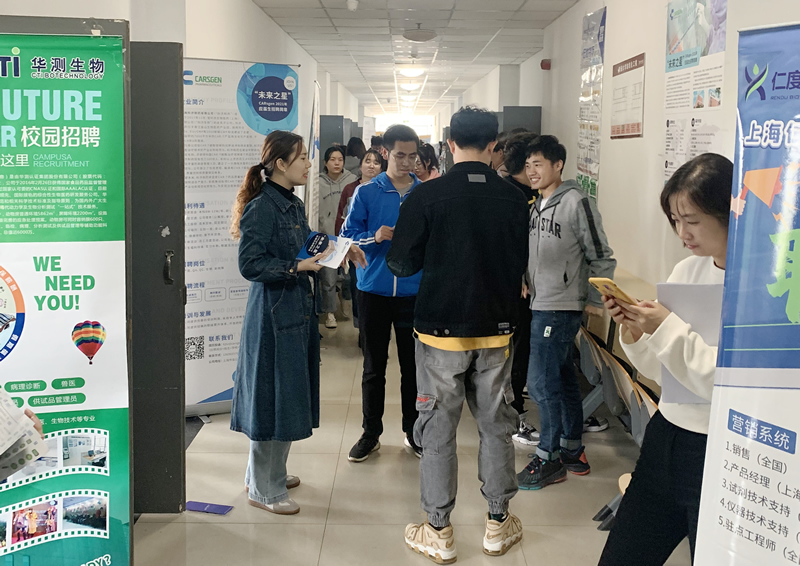 本次招聘会共有43家国内知名生物医药类企业参会,其中不乏国内外生物医药类的领军企业,提供就业岗位1200多个。招聘会现场人头攒动,到场参加学生超过1500人,意向签约近百人。