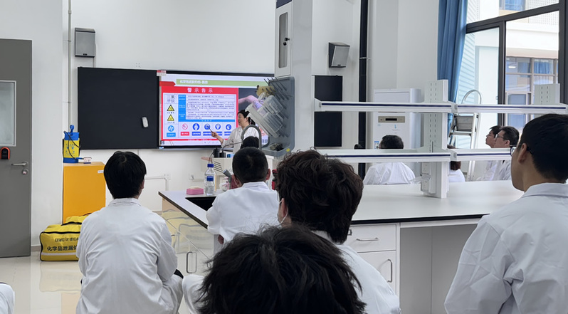 本次演练包括实验室安全事故应急演练介绍、观看实验室危化品泄露演练和消防演练视频、实操等三个环节。在每一个环节中,师生积极参与并提问,加深了对实验室的消防设施、危化品管理、洗眼器的日常检查等相关安全知识的认识。尤其是实操环节,2名研究生规范穿戴安全服等装备,正确演示危化品泄露的应急处理过程等,提高了实验室安全事故应急能力。