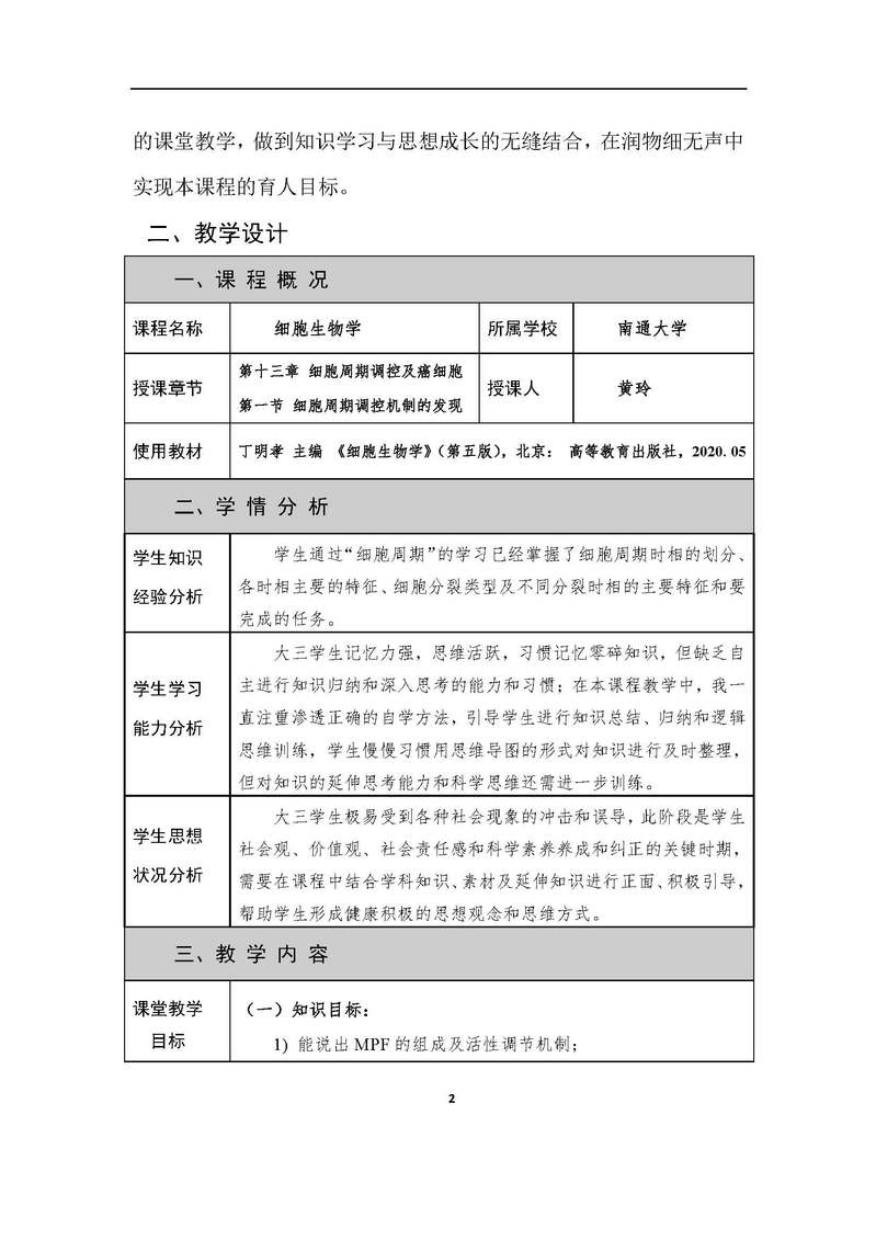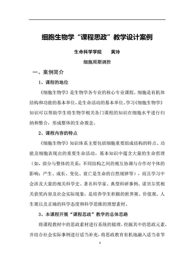 细胞生物学“课程思政”教学设计案例