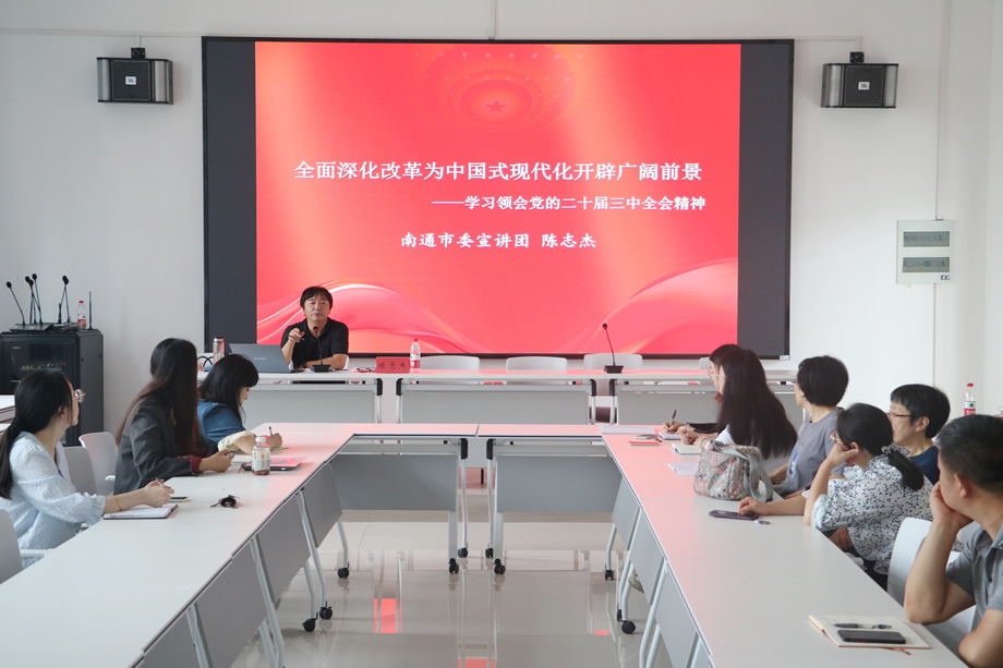 2024年9月25日,永利3044集团举办学习贯彻党的二十届三中全会精神报告会,南通市委宣讲团成员、永利集团马克思主义学院教授陈志杰来我院作了题为《全面深化改革为中国式现代化开辟广阔前景——学习领会党的二十届三中全会精神》的宣讲报告。学院党委书记季凌燕主持报告会。